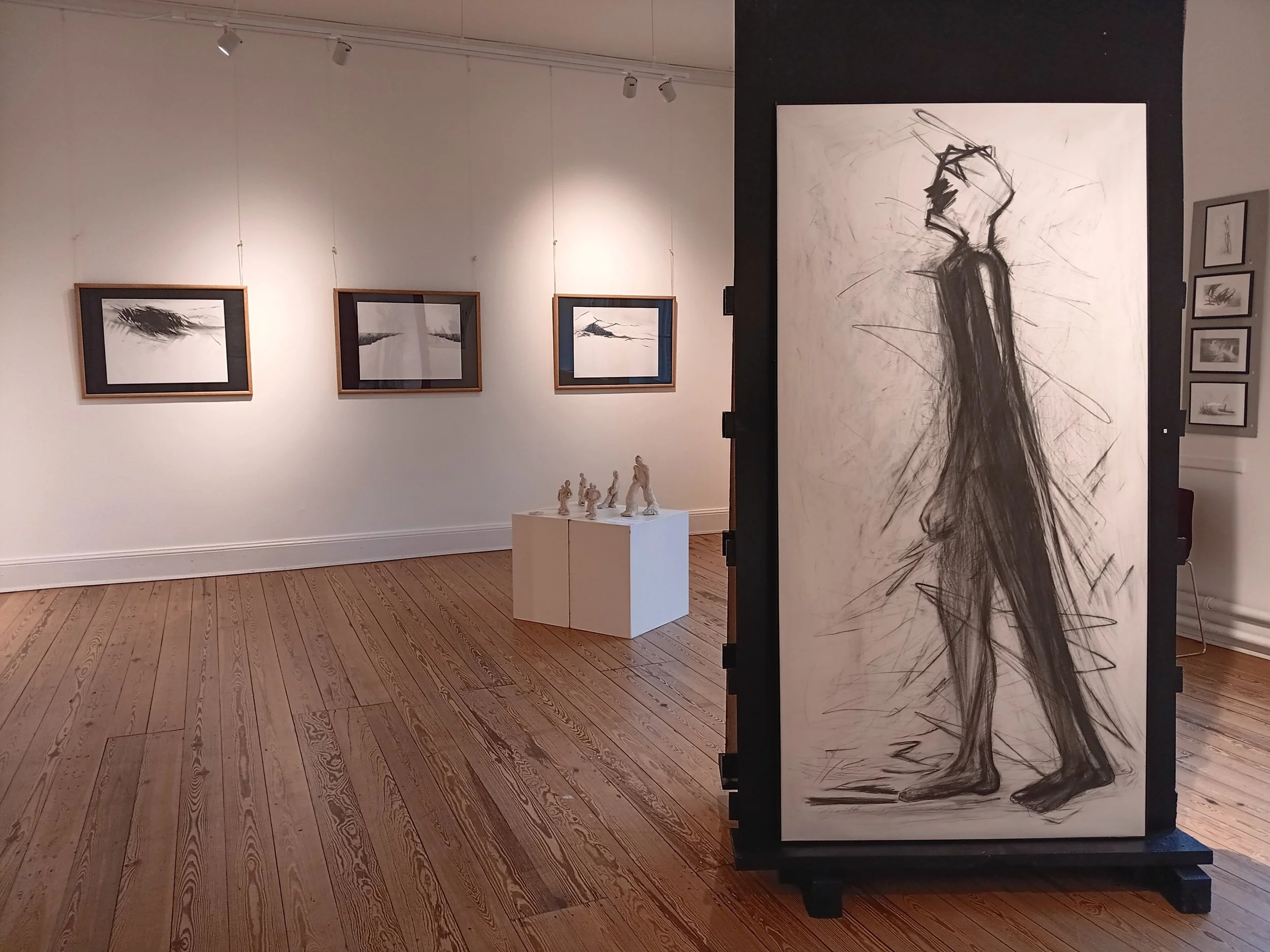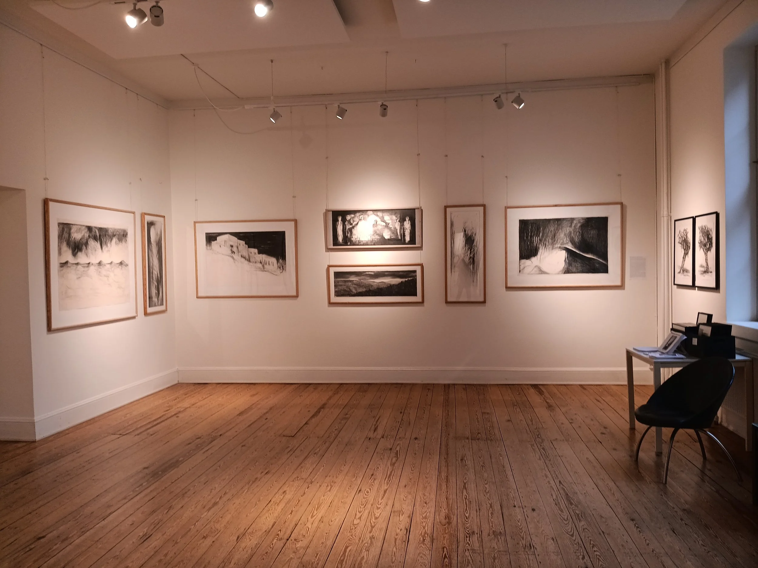 På udstillingen viser jeg et forløb, siden jeg begyndte at arbejde med det sort-hvide univers. Et forløb, der omfavner forskellige emner: de danske gravhøje, Jerusalem, symboler som stige, engle, horisonter, grænser, portrætter, lyset og mørket. Alle temaer er bundet til hinanden og vokser ud af hinanden